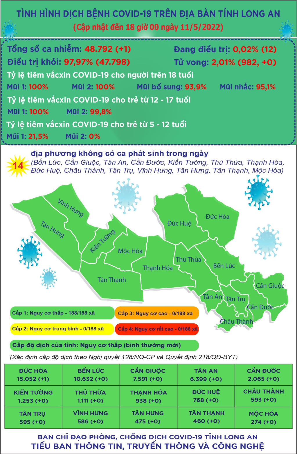 14 địa phương trong tỉnh không ghi nhận ca mắc COVID-19 trong ngày 11/5