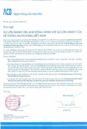 Theo đó, Chủ tịch Hội đồng Quản trị ACB Trần Xuân Giá và Tổng giám đốc Lý Xuân Hải khẳng định, hành vi gài bẫy hay tố giác sau lưng ngân hàng bạn là xa lạ đối với triết lý kinh doanh, không được chấp nhận trong tư duy và hành động của ban lãnh đạo ACB.