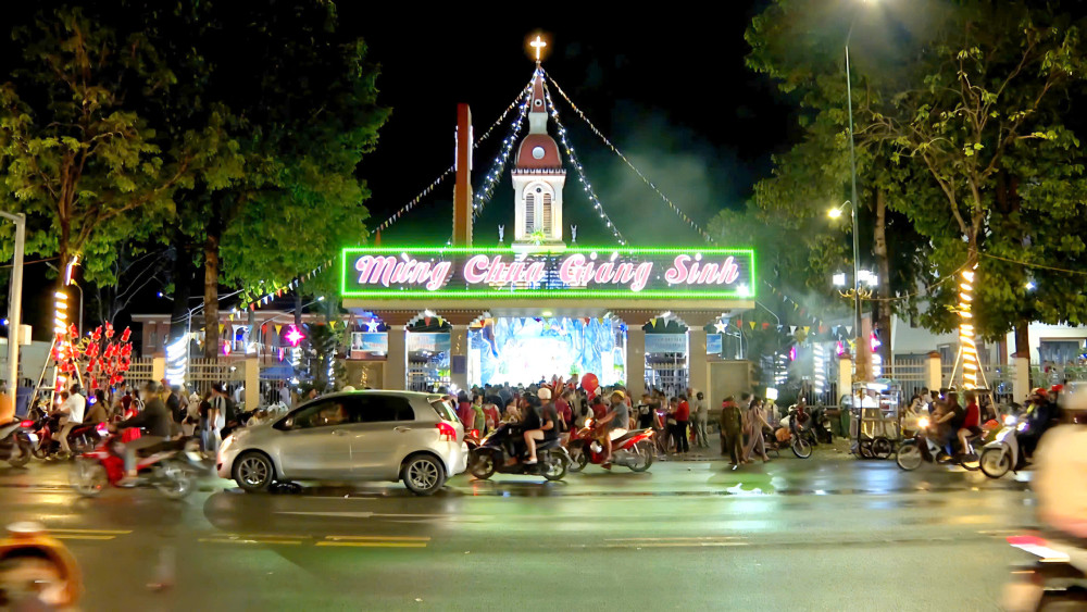 Tối ngày 24/12, không khí Giáng sinh năm 2025 rộn ràng khắp các phố phường. Từ các giáo xứ, nhà thờ đến các trung tâm thương mại, hàng quán đều nhộn nhịp người dân đến dự lễ, tham quan, vui chơi. Những bài hát chào mừng Giáng sinh được mọi người mở khắp mọi nơi đã tạo nên một không gian lễ hội đầy màu sắc, ấm áp.