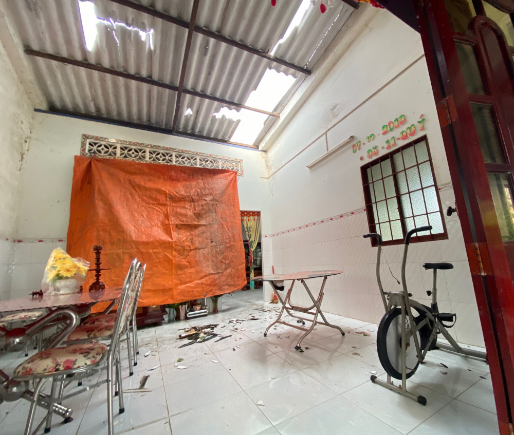 Không ít hộ dân vẫn chưa hết bàng hoàng sau cơn giông dữ. Bà Nguyễn Thị Lệ Thủy, ngụ ấp Cầu Đúc, kể lại trong nghẹn ngào: “Tôi đang chẻ củi ngoài sân thì nghe tiếng động lớn, nhìn lên thấy lục bình, nhành cây theo cơn giông cuốn tới. Nhanh lắm! Tôi chạy vào thì nhà bếp đã sập, lên nhà trên thì cũng bị tốc mái. May mắn là tôi không bị thương gì”.