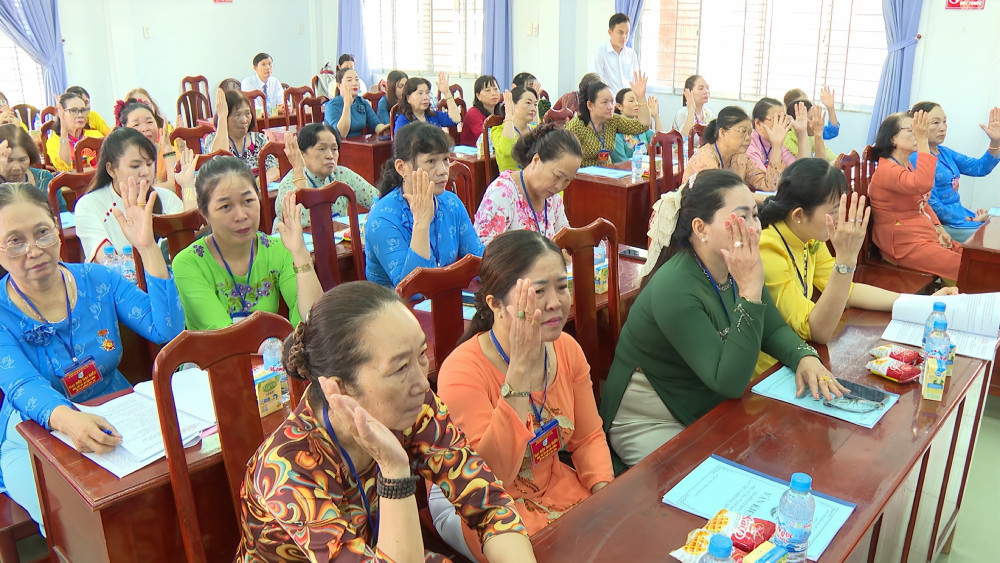 Đại hội thống nhất thông qua 12 chỉ tiêu nghị quyết với một số chỉ tiêu đáng chú ý: hằng năm giúp 3 hộ có phụ nữ thoát nghèo, thoát cận nghèo; trong nhiệm kỳ hỗ trợ thành lập 3 tổ hợp tác có phụ nữ tham gia quản lý; Hội LHPN xã có hoạt động hỗ trợ 90% người bị bạo lực gia đình, bạo lực trên cơ sở giới được phát hiện; hỗ trợ 100% hội viên, phụ nữ, trẻ em là nạn nhân của bạo lực gia đình, mua bán người trở về được tiếp cận ít nhất 1 dịch vụ trợ giúp xã hội; xây dựng tổ chức Hội hoạt động hiệu quả, thích ứng với bối cảnh mới; xây dựng đội ngũ cán bộ bản lĩnh, tận tâm, sáng tạo.