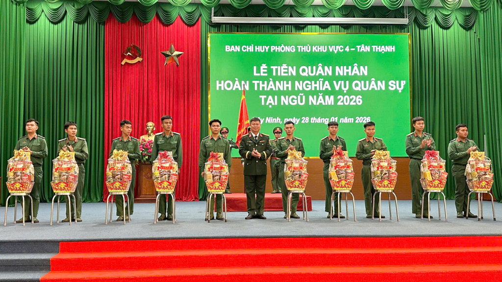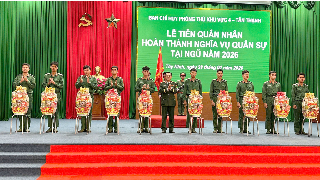 Ban Chỉ huy Phòng thủ khu vực 4 - Tân Thạnh: Tiễn 245 quân nhân hoàn thành nghĩa vụ quân sự