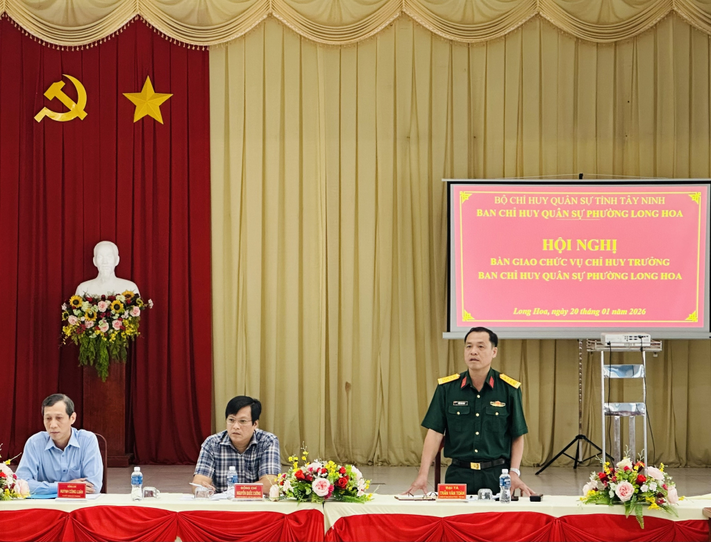 Bàn giao nhiệm vụ Chỉ huy trưởng Ban Chỉ huy Quân sự phường Long Hoa
