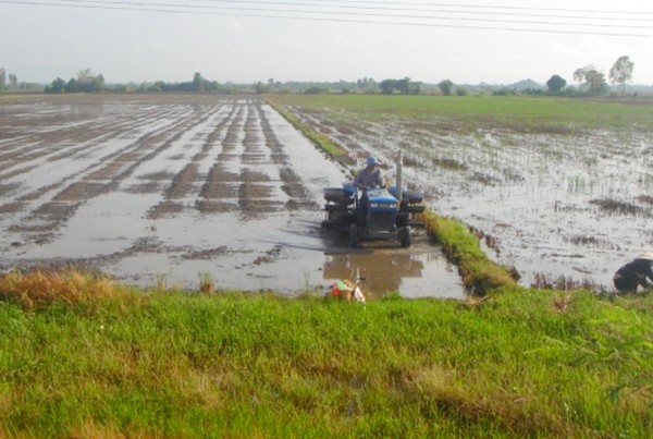 Nông dân xã An Thạnh dọn ruộng xuống giống vụ Hè Thu 2014. |