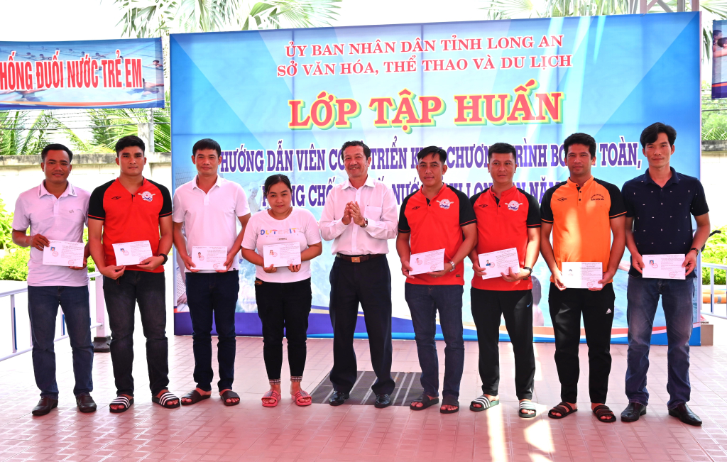 Bến Lức bế giảng lớp tập huấn nghiệp vụ hướng dẫn viên bơi lội