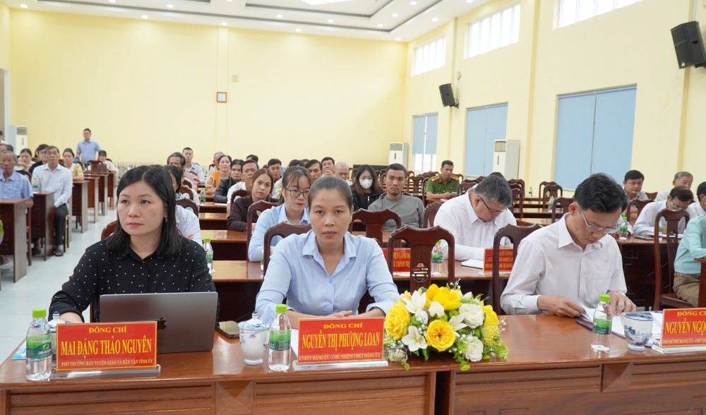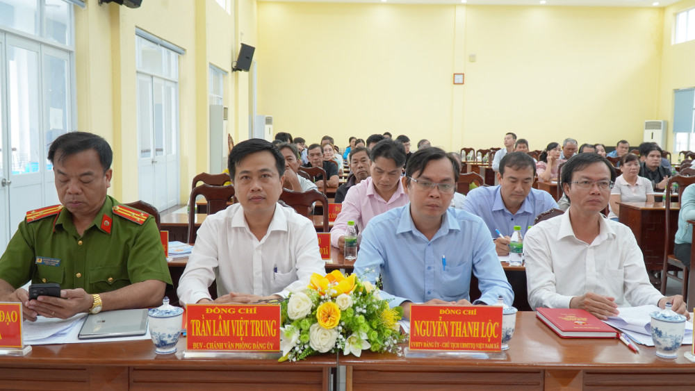 Tham dự có Phó Trưởng ban Tuyên giáo và Dân vận Tỉnh ủy Mai Đặng Thảo Nguyên; Phó Bí thư Thường trực Đảng ủy, Chủ tịch HĐND xã Võ Quốc Thanh; Phó Bí thư Đảng ủy, Chủ tịch UBND xã Nguyễn Ngọc Anh; lãnh đạo các ban, ngành chuyên môn và hơn 100 đại biểu là đại diện các cơ sở kinh doanh.