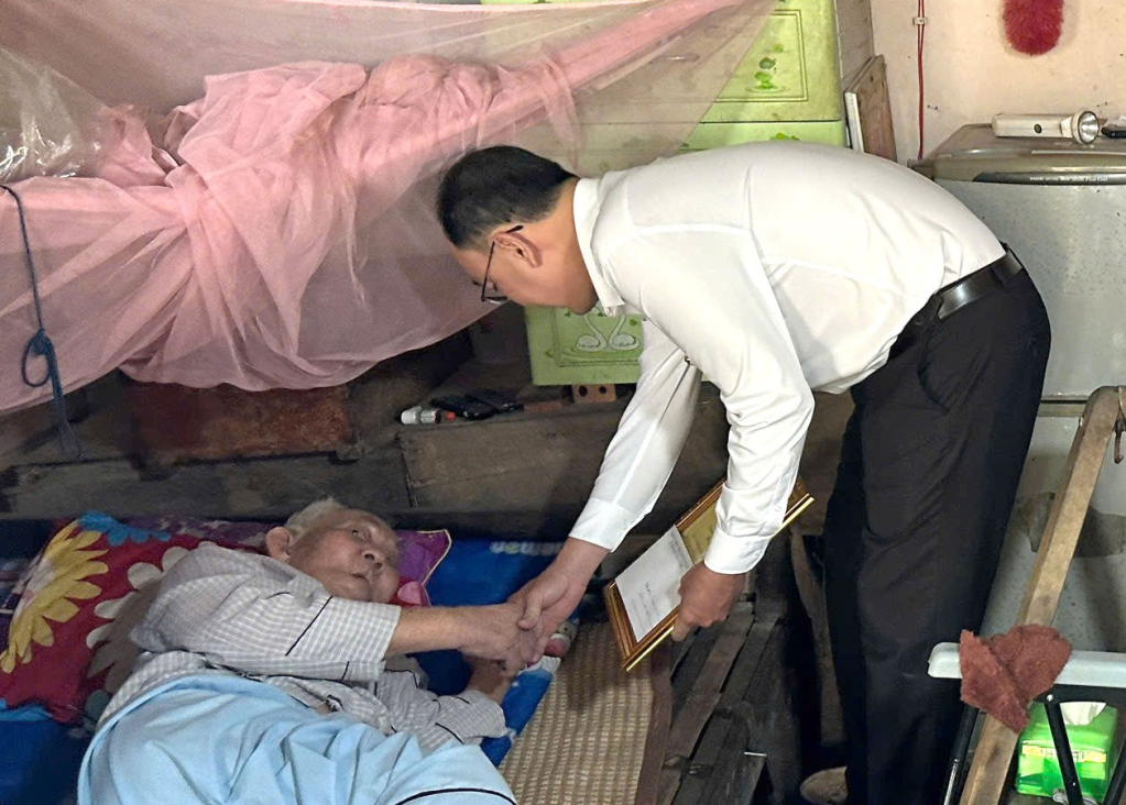 Bí thư Đảng ủy xã Tân Thạnh thăm, chúc thọ Người cao tuổi