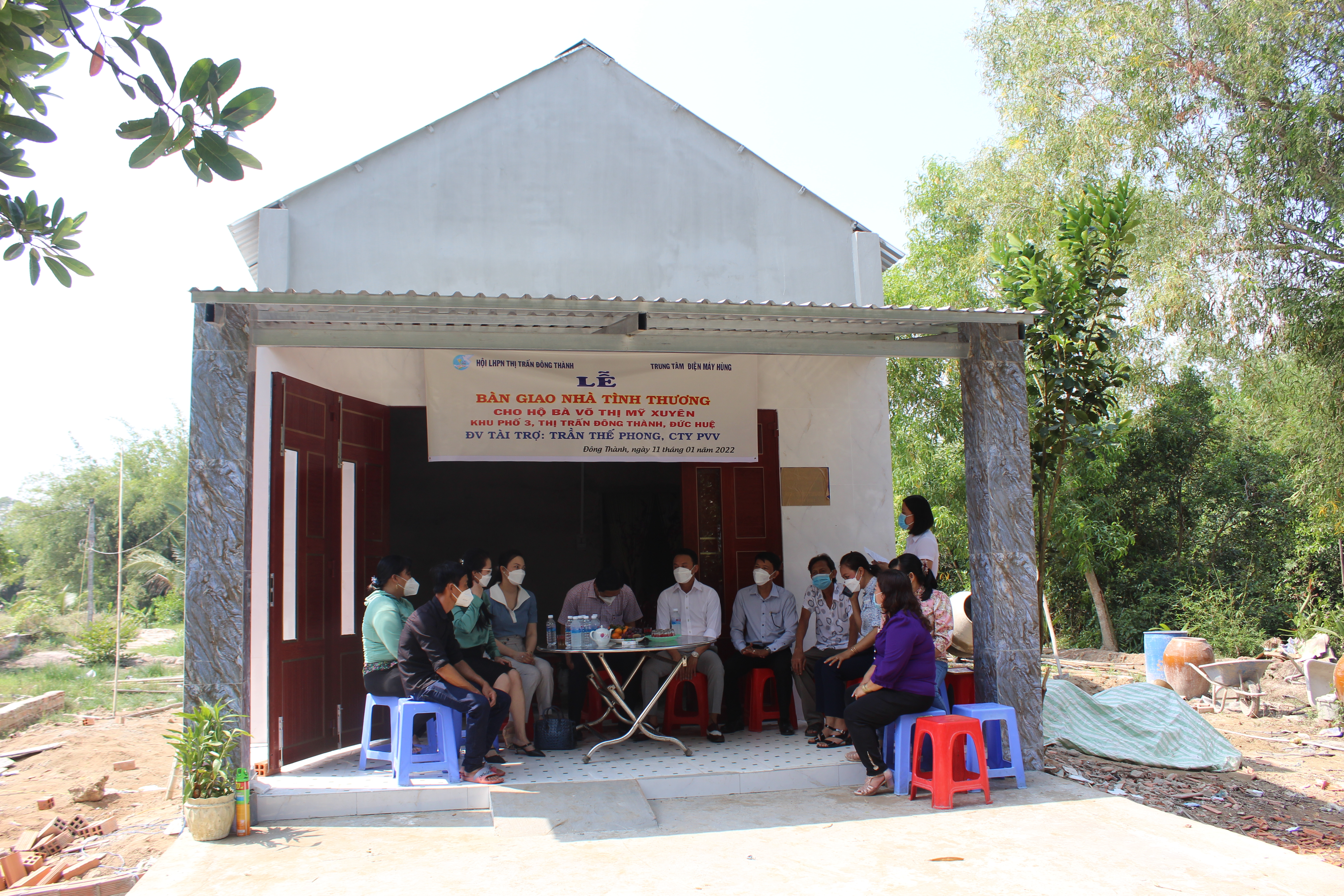 Bí thư Huyện ủy Đức Huệ trao nhà tình thương cho hộ phụ nữ nghèo.