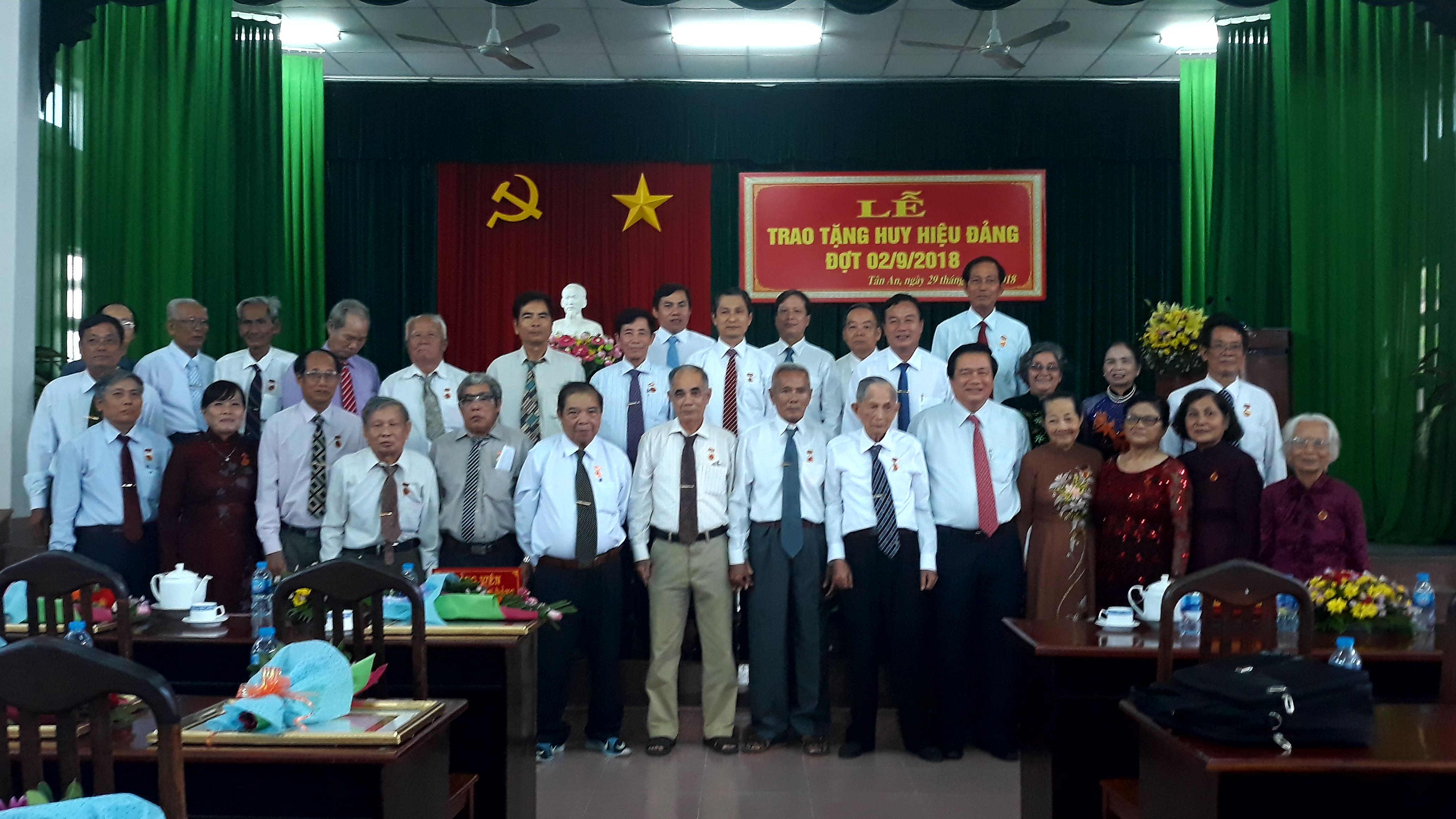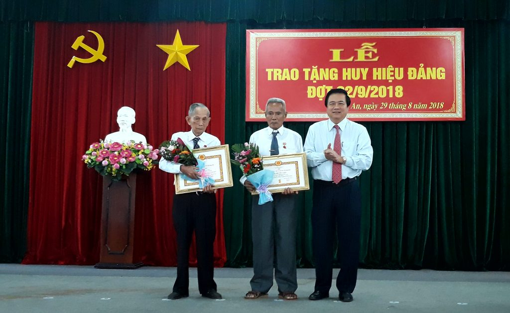Bí thư tỉnh ủy Long An Phạm Văn Rạnh trao huy hiệu Đảng cho đảng viên cao niên
