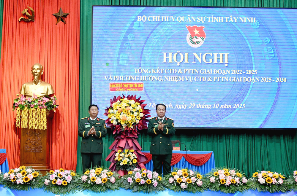 Ngày 29/10, Bộ CHQS tỉnh Tây Ninh tổ chức tổng kết công tác Đoàn và phong trào Thanh niên giai đoạn 2022 - 2025. Thượng tá Ngô Khánh, Phó Chính ủy Bộ CHQS tỉnh Tây Ninh dự và chỉ đạo hội nghị.