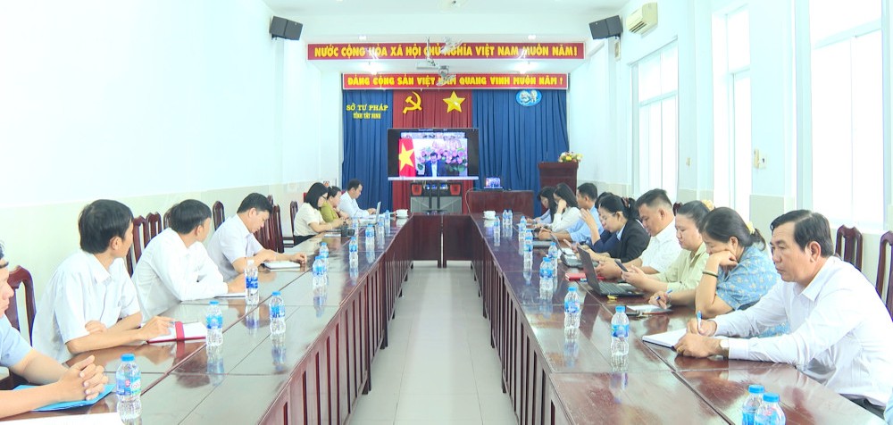 Hội nghị được kết nối với 34 điểm cầu tại các tỉnh, thành phố trên cả nước. Tại điểm cầu Tây Ninh, Phó Giám đốc Sở Tư pháp Lý Hồng Huấn chủ trì hội nghị.