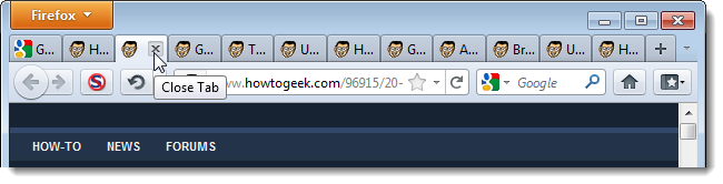 Giờ đây, thì các tab đã trở nên phù hợp hơn trên thanh tab. Tuy nhiên, nếu bạn mở quá nhiều tab (ví dụ, tới 20 tab một lúc), thì các tab cũng sẽ trở nên nhỏ thực sự, và bạn có thể sẽ không đọc chữ viết trên các tab. Đồng thời, hãy chú ý rằng khi di chuyển chuột trong một tab để sử dụng các nút Close, thì bạn sẽ không thể thấy các dòng chữ.