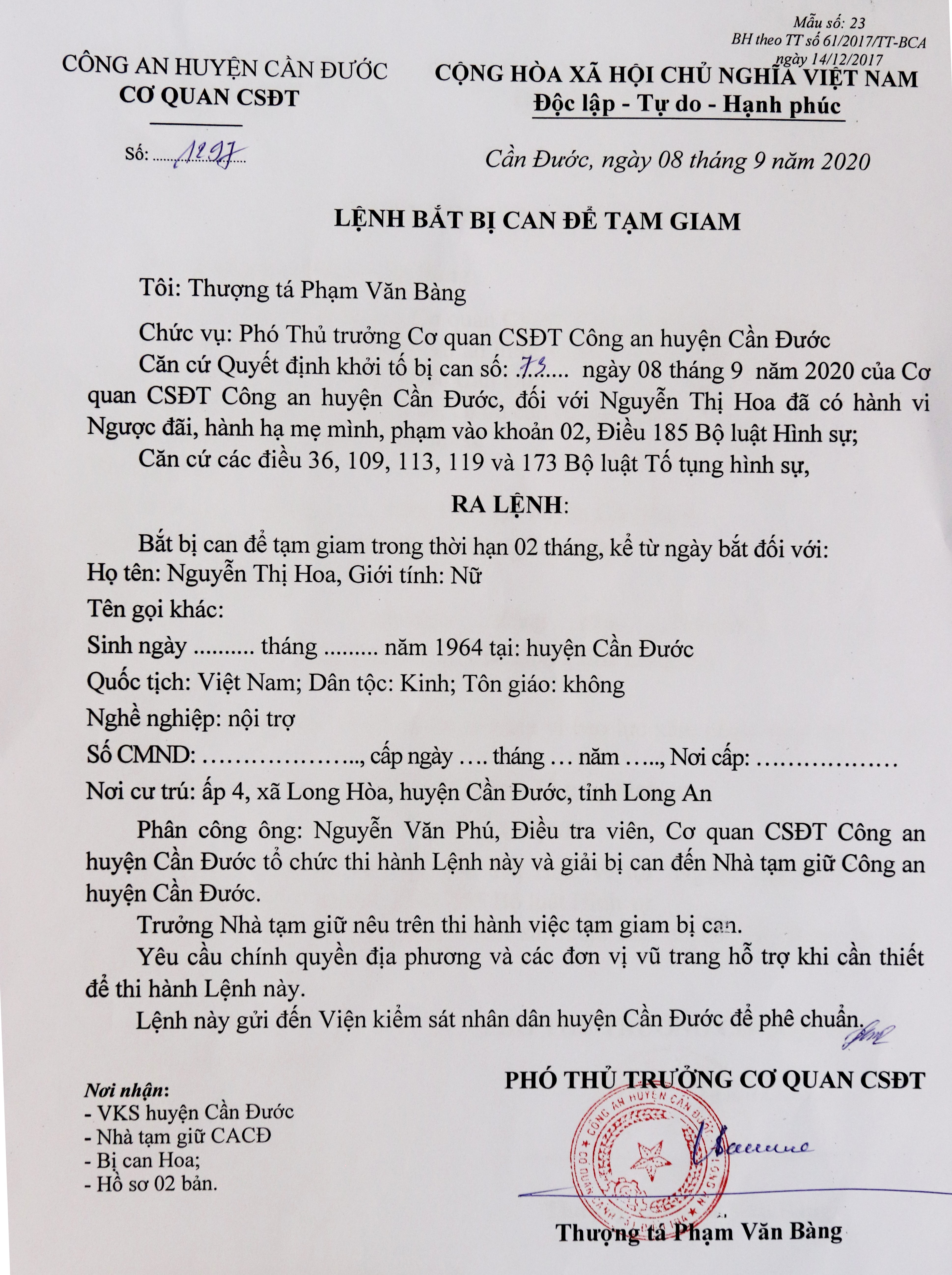 Cần Đước: Ra quyết định khởi tố vụ án ngược đãi mẹ già