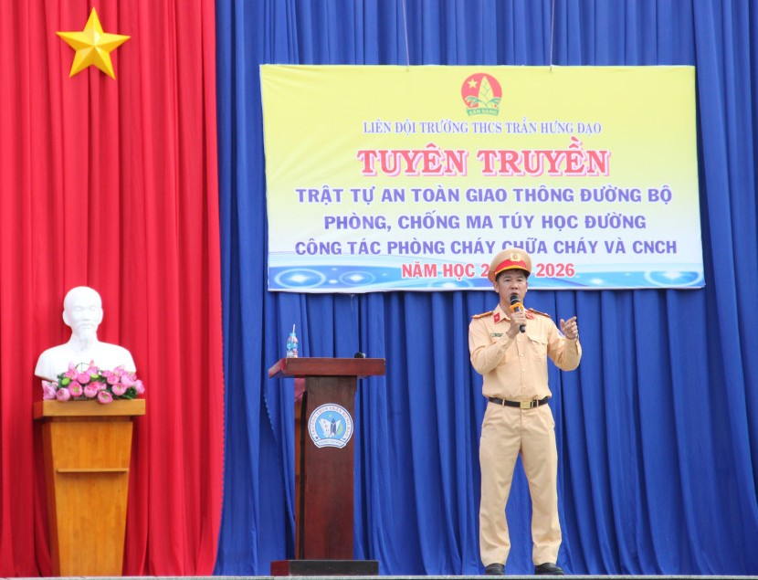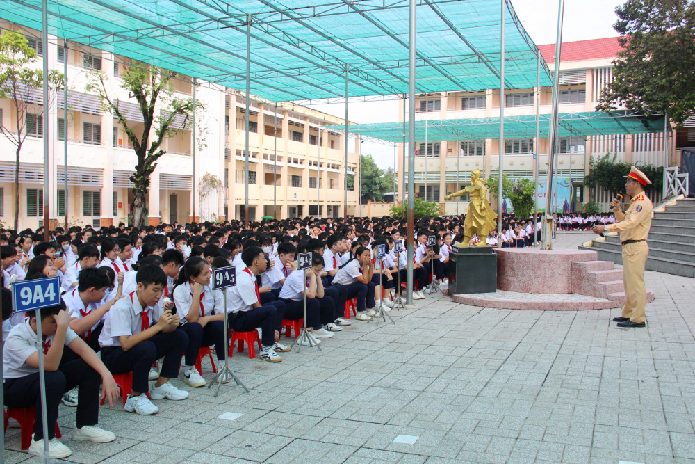 Cảnh sát giao thông tổ chức tuyên truyền ở trường học