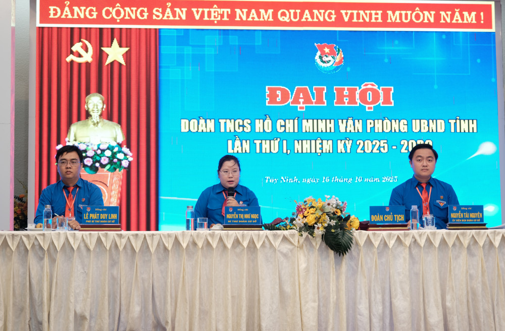 Chiều 16/10, Đoàn cơ sở (ĐCS) Văn phòng UBND tỉnh Tây Ninh tổ chức Đại hội Đoàn TNCS Hồ Chí Minh lần thứ I, nhiệm kỳ 2025-2030. Đến dự có Phó Bí thư Đoàn khối Cơ quan và Doanh nghiệp tỉnh Phạm Trần Thiên Tú.