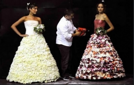 Juan Manuel Barrientos, một đầu bếp trưởng đến từ Colombia đã sáng tạo ra 2 chiếc váy cưới có thể ăn được, trình diễn trong buổi biểu diễn thời trang Colombiatex tại Medelin.