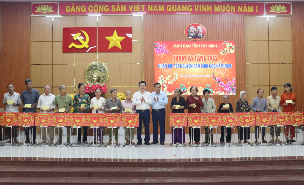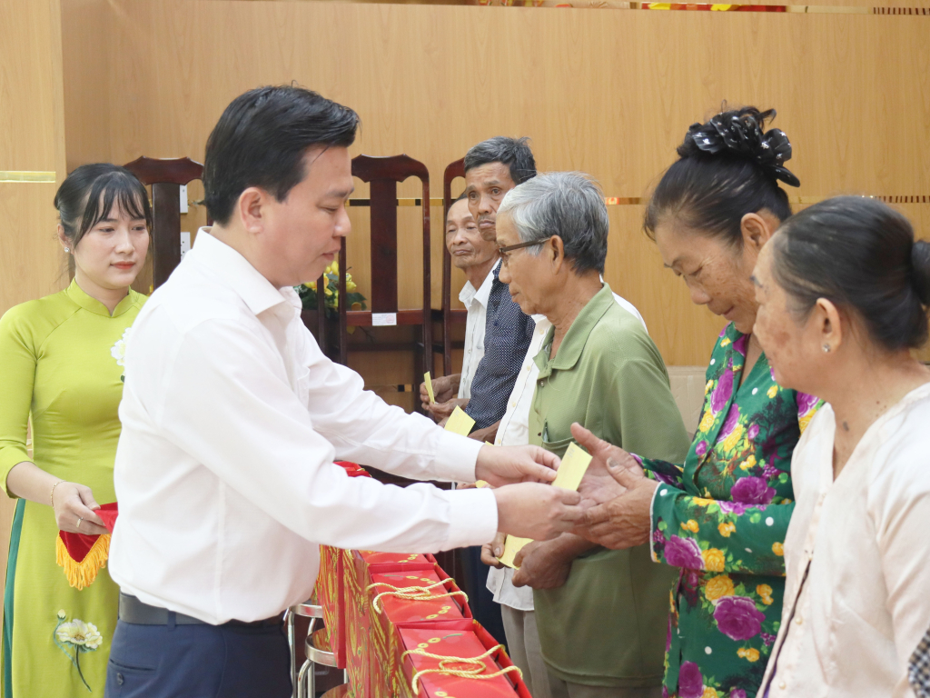 Chủ tịch UBMTTQ Việt Nam tỉnh Nguyễn Thanh Hải trao tặng quà tết tại xã Mỹ Lộc
