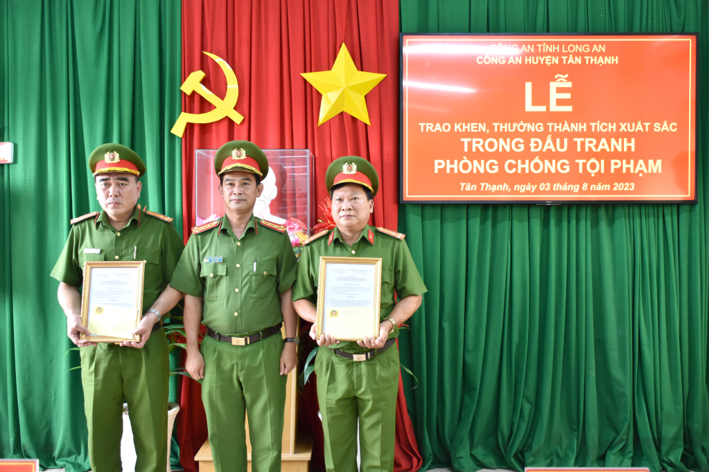 Công an tỉnh Long An trao thưởng đột xuất trong khám quá chuyên án cướp tài sản trên Quốc lộ N2