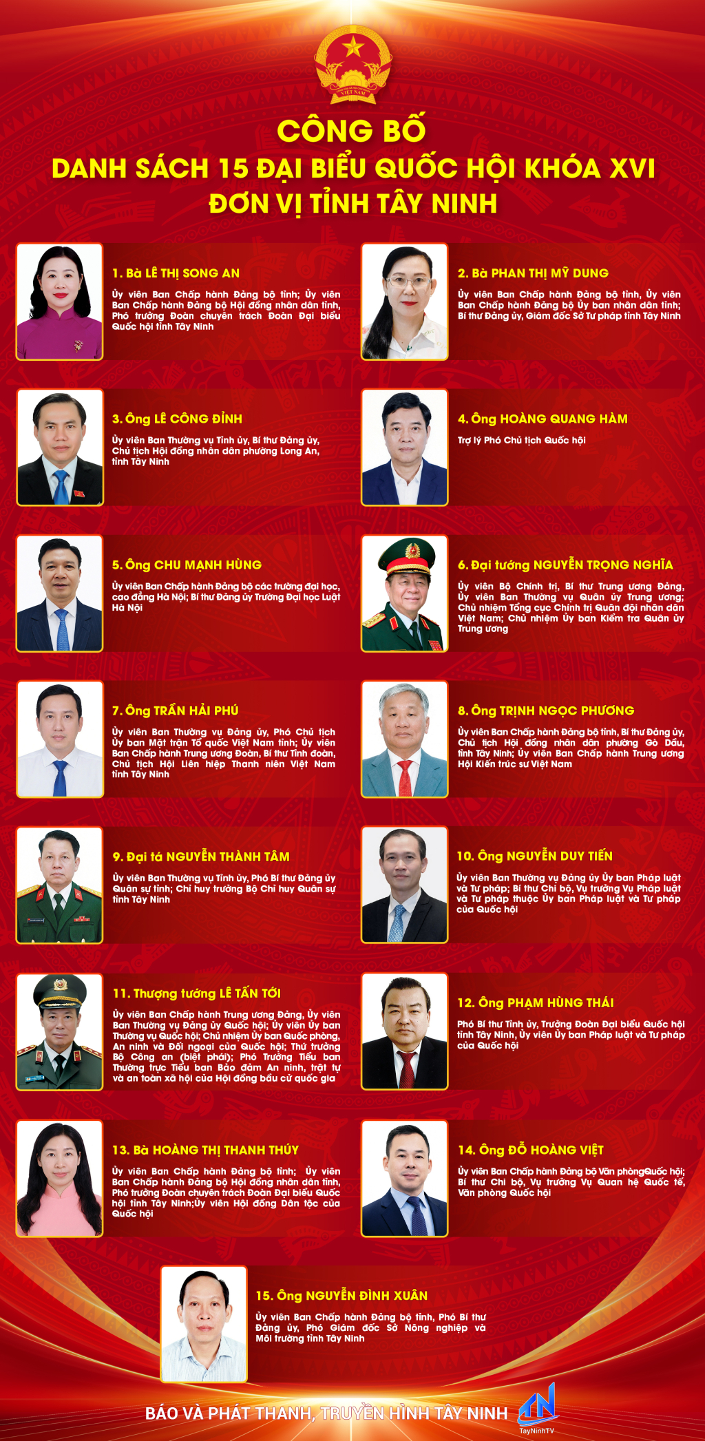 Danh sách 15 đại biểu Quốc hội khóa XVI đơn vị tỉnh Tây Ninh