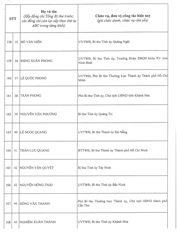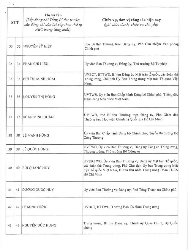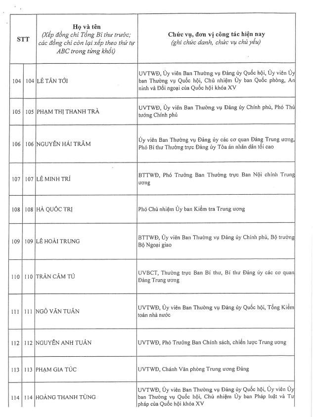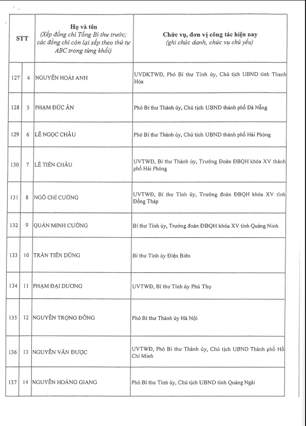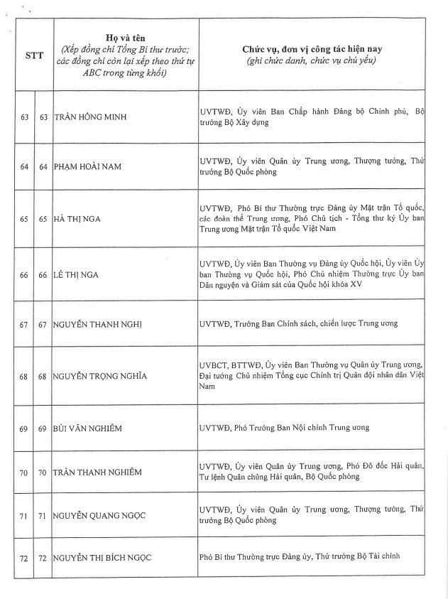 Công bố danh sách Ban Chấp hành Trung ương Đảng khóa XIV