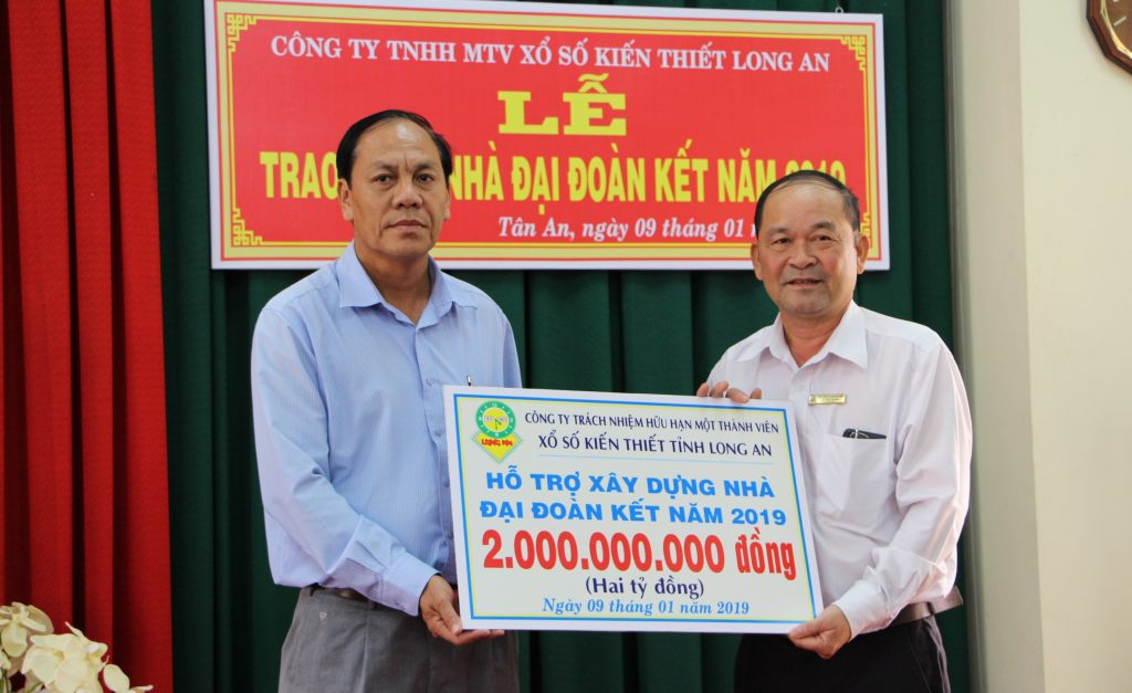 Công ty TNHH Một thành viên Xổ số kiến thiết Long An trao tặng nhà đại đoàn kết