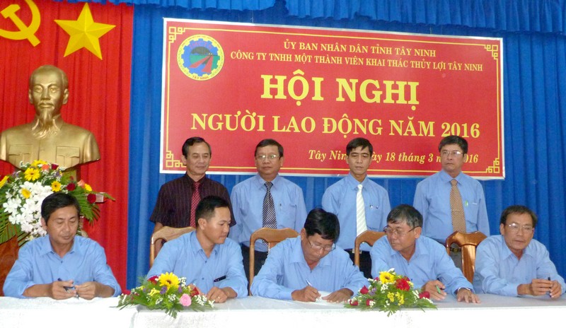 | Các đơn vị trực thuộc Công ty TNHH MTV khai thác thủy lợi Tây Ninh ký giao ước thi đua năm 2016. |