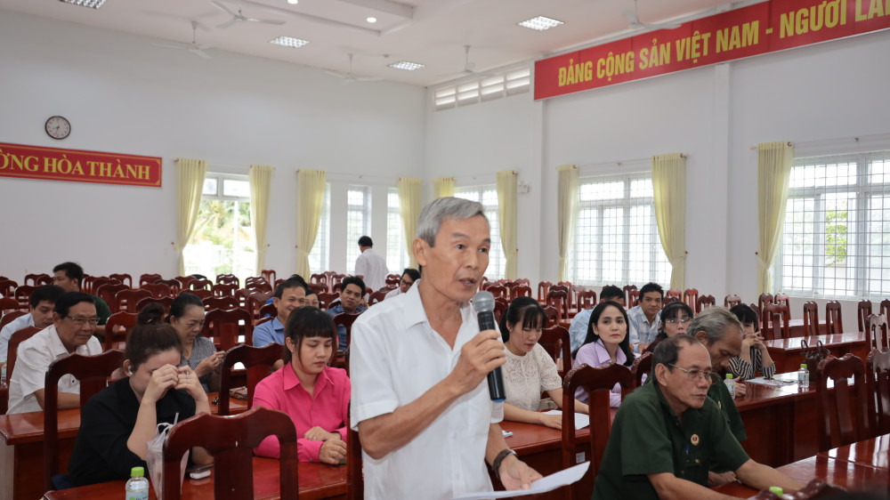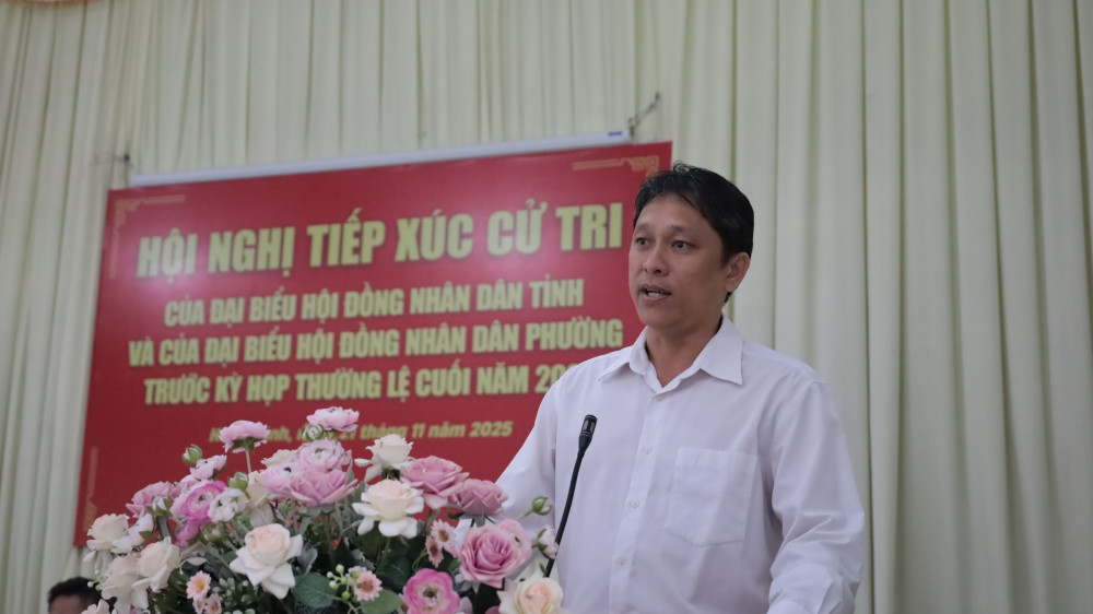 Tại hội nghị, Bí thư Đảng ủy phường Hòa Thành Dương Quốc Khánh - thành viên Tổ đại biểu - thông tin đến cử tri kết quả các kỳ họp trước; tình hình giải quyết các kiến nghị của cử tri sau kỳ họp thứ 2; dự kiến nội dung và chương trình kỳ họp cuối năm 2025 của HĐND tỉnh khóa X, nhiệm kỳ 2021–2026; kết quả trả lời, giải quyết của cơ quan chức năng về những vấn đề cử tri đã nêu trong kỳ tiếp xúc trước và sau kỳ họp thứ 2 HĐND tỉnh.
