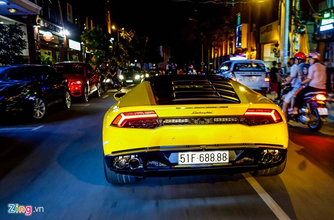 Tính đến thời điểm này, Việt Nam có trên dưới 10 chiếc Huracan, phần lớn mang màu xanh nõn chuối và màu cam. Huracan sử dụng động vơ V10, dung tích 5.2 lít, công suất 610 mã lực, tăng tốc từ 0-100 km/h trong 3,2 giây, tốc độ tối đa 325 km/h.