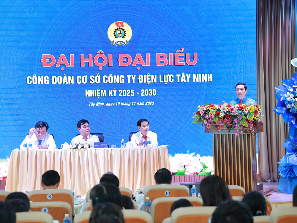 Ngày 10/11, Công đoàn cơ sở Công ty Điện lực Tây Ninh tổ chức Đại hội đại biểu nhiệm kỳ 2025 - 2030. Đến dự có Phó Chủ tịch Công đoàn Tổng Công ty Điện lực miền Nam Phạm Minh Châu; Bí thư Đảng ủy, Giám đốc Công ty Điện lực Tây Ninh Nguyễn Tấn Hùng và 115 đại biểu đại diện cho hơn 2.000 đoàn viên đến từ 27 Công đoàn bộ phận trực thuộc.
