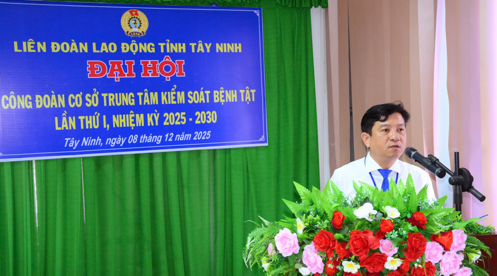 Giám đốc Trung tâm Kiểm soát bệnh tật tỉnh Tây Ninh Huỳnh Hữu Dũng chúc mừng Đại hội thành công tốt đẹp; đề nghị Ban Chấp hành Công đoàn cơ sở Trung tâm Kiểm soát bệnh tật khóa I, nhiệm kỳ 2025 – 2030, phối hợp làm tốt công tác kiểm tra, giám sát; kiên quyết đấu tranh với những biểu hiện tiêu cực, tham nhũng, lãng phí; tiếp tục quan tâm công tác tuyên truyền chủ trương, đường lối của Đảng, chính sách, pháp luật của Nhà nước cho đoàn viên; tổ chức tốt các phong trào hành động, thi đua, nêu gương người tốt việc tốt; giới thiệu đoàn viên ưu tú cho Đảng xem xét kết nạp và thực hiện tốt công tác phát triển đoàn viên./.