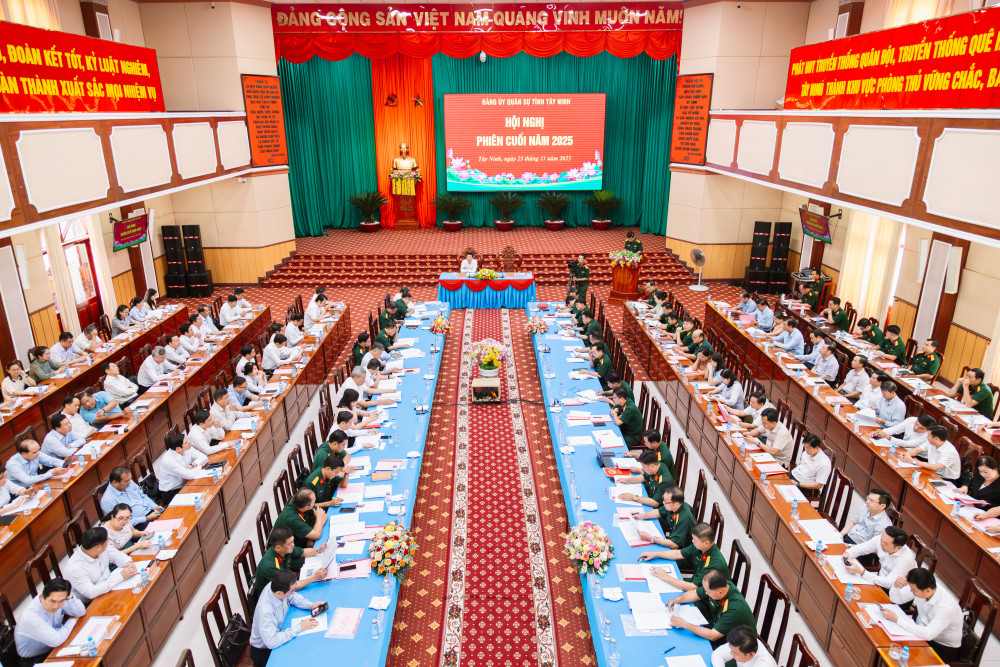Chiều 25/11, Đảng ủy Quân sự tỉnh Tây Ninh tổ chức Hội nghị phiên cuối năm 2025 và ban hành Nghị quyết lãnh đạo thực hiện nhiệm vụ năm 2026.