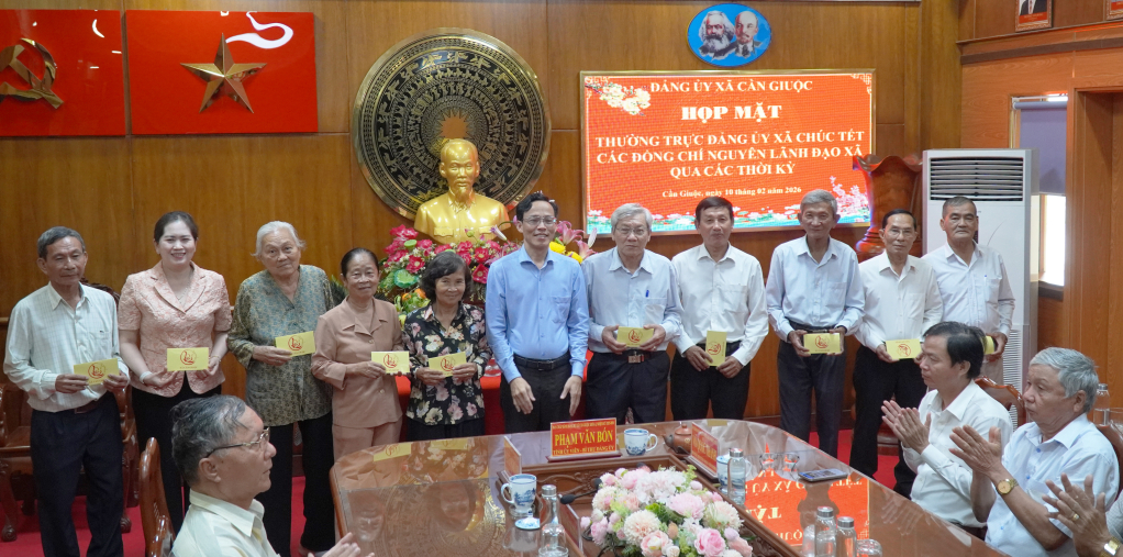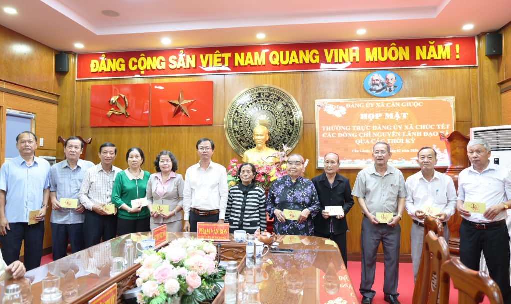 Đảng ủy xã Cần Giuộc họp mặt, chúc tết nguyên lãnh đạo xã qua các thời kỳ