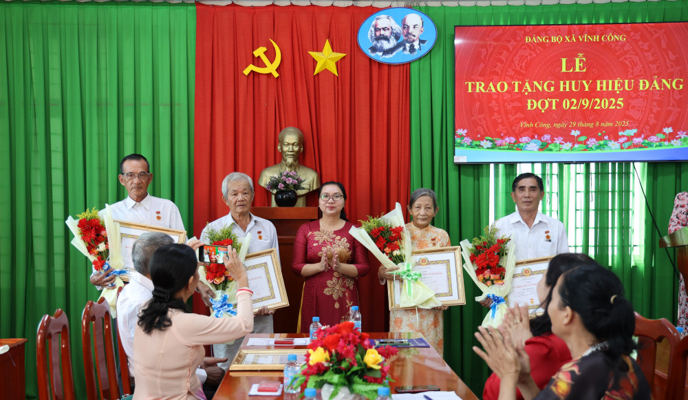 Đảng ủy xã Vĩnh Công trao Huy hiệu Đảng đợt 02/9