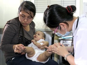 Bác sĩ Bệnh viện Nhi Đồng 1, Thành phố Hồ Chí Minh, khám chẩn đoán bệnh cho trẻ. |