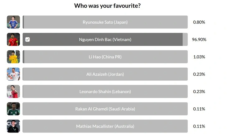 Đình Bắc đang dẫn đầu 96,9% cuộc bình chọn 'Cầu thủ ấn tượng nhất Giải U23 châu Á'