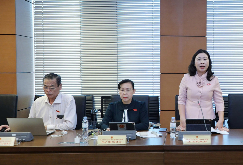 Tham gia thảo luận, đối với dự thảo Nghị quyết của Quốc hội về những cơ chế, chính sách đặc thù để thực hiện Nghị quyết số 71-NQ/TW, Phó Trưởng đoàn chuyên trách Đoàn ĐBQH tỉnh Tây Ninh Lê Thị Song An đề nghị việc phân cấp phân quyền nên giao cấp xã đủ điều kiện để tuyển dụng giáo viên, nhân viên nhằm bảo đảm tính kịp thời, còn Sở Giáo dục và Đào tạo chỉ hỗ trợ về chuyên môn, thẩm định và kiểm tra, giám sát quá trình thực hiện.