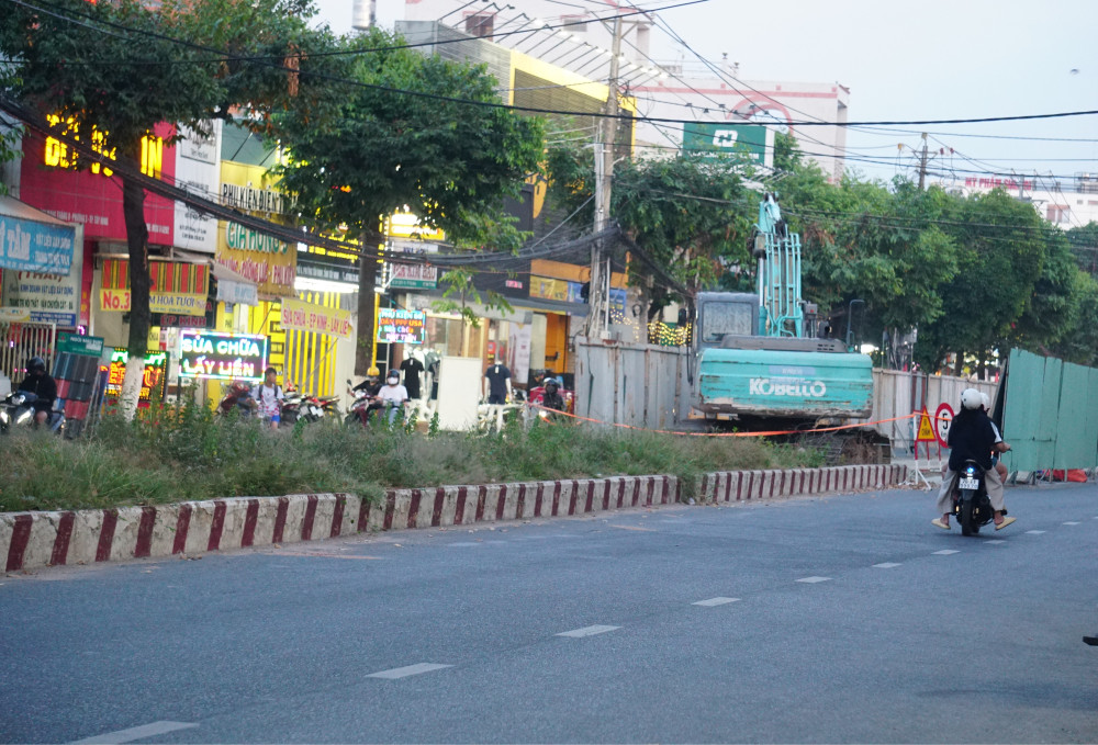 Nhiều đoạn con lươn khác đang trong quá trình thi công tháo bỏ. Những vị trí này được đơn vị thi công dùng tôn, khung sắt quây lại để làm hàng rào công trường, tạm thời phân làn giao thông.