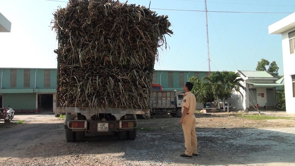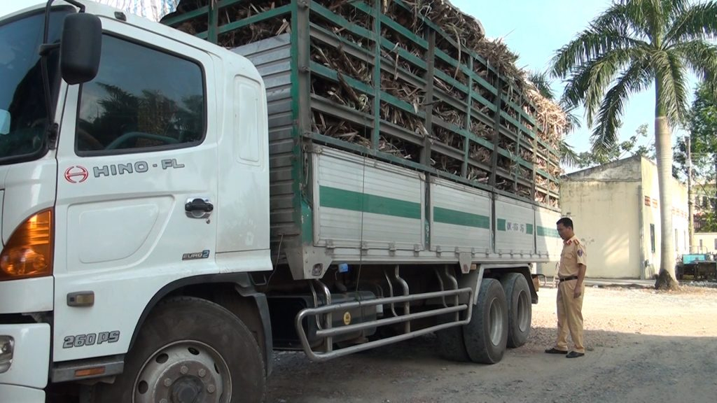 Đức Hòa: Phạt xe chở mía quá tải.