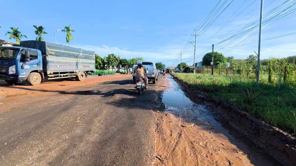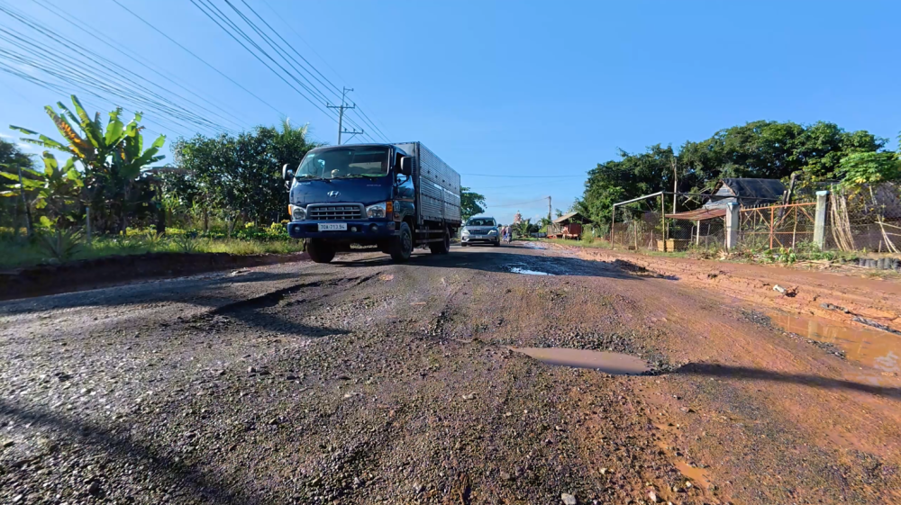 Tuy nhiên, thời gian gần đây, do mưa lớn kéo dài, cùng với việc xe tải trọng lớn di chuyển liên tục khiến mặt đường tiếp tục bị hư hỏng, các "ổ gà" mở rộng thành các... "ổ voi", đặc biệt nguy hiểm vào ban đêm khi tầm nhìn bị hạn chế.