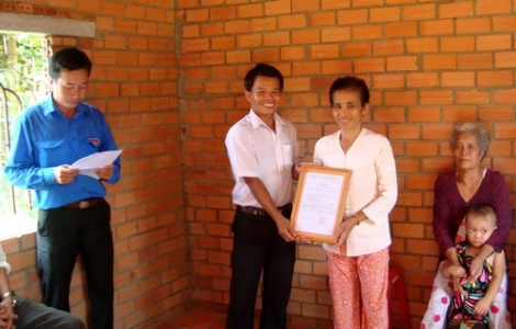 Bà Trần Thị Long, hết sức xúc động, vui mừng khi nhận được căn nhà mới, và hứa phấn đấu vươn lên, ổn định cuộc sống.