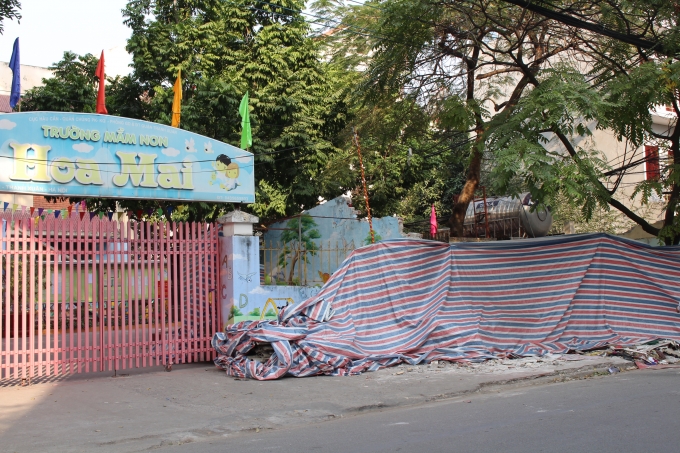 Theo một số người chứng kiến cho biết, vào thời điểm xảy ra vụ đổ sập thì thấy một nhóm công nhân đang tiến hành sửa chữa, phá dỡ phần tường trước trường Mầm non Hoa Mai.