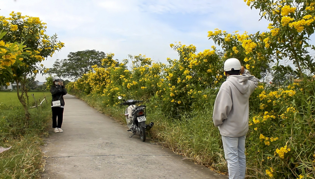 Hoa hoàng yến nhuộm vàng con đường nông thôn Tân Trụ