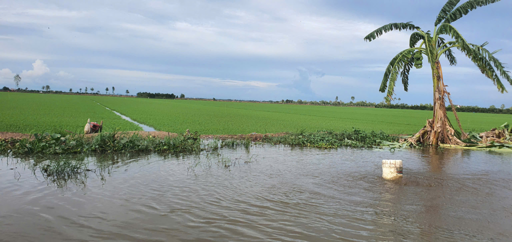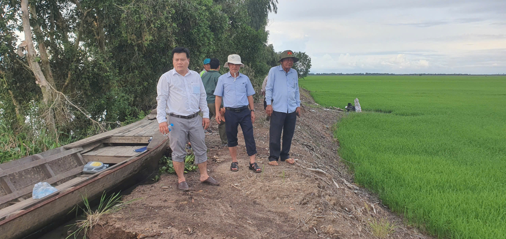 Lãnh đạo huyện Tân Thạnh kiểm tra các vùng ô đê bao ảnh hưởng lũ và triều cường