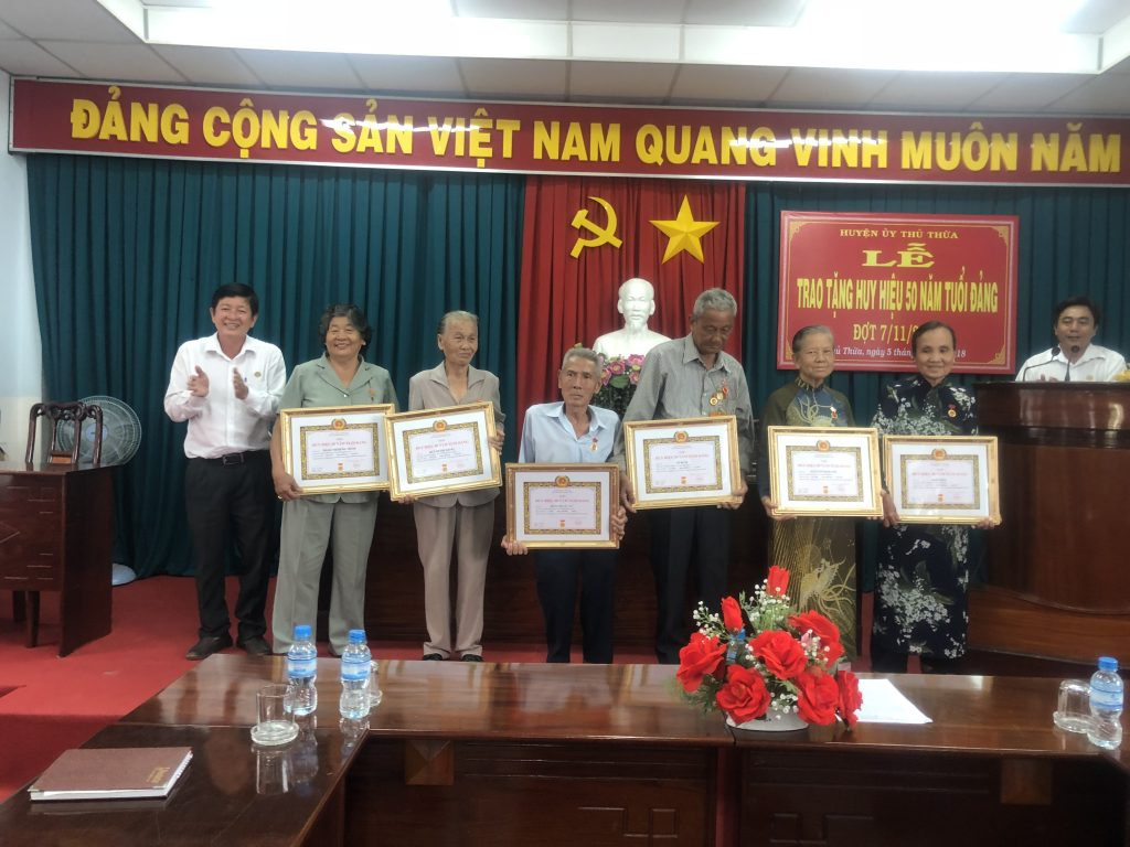 Huyện uỷ Thủ Thừa trao tặng huy hiệu 50 năm tuổi Đảng
