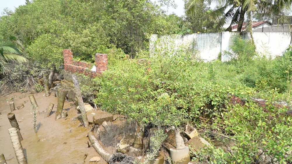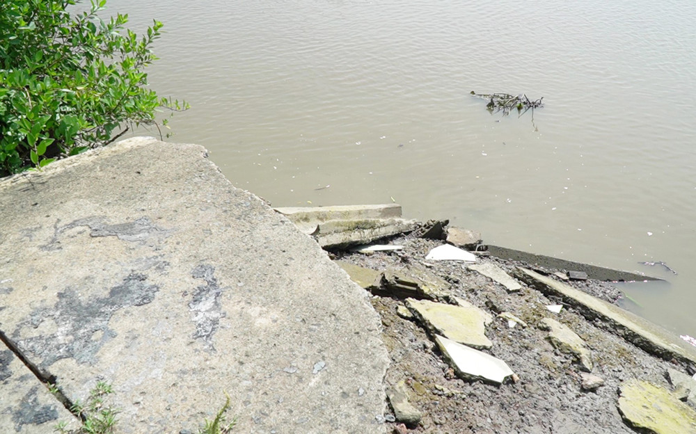 Theo đó, hiện khu vực sạt lở có tổng chiều dài khoảng 300m, trong đó đoạn ngã 3 Xóm Câu dài khoảng 50m được xác định là vị trí đặc biệt nguy hiểm; ảnh hưởng trực tiếp đến 10 hộ dân với 40 nhân khẩu đang sinh sống, bám trụ tại khu vực. Dù người dân và chính quyền đã nhiều lần gia cố bằng cừ dừa, nhưng tình hình vẫn diễn biến phức tạp, nhất là khi mưa lớn kết hợp triều cường dâng cao.