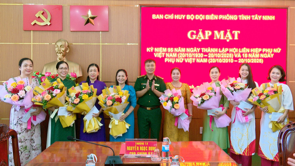 Ngày 20/10, Ban Chỉ huy Bộ đội Biên phòng (BĐBP) Tây Ninh tổ chức họp mặt kỷ niệm 95 năm ngày thành lập Hội Liên hiệp Phụ nữ Việt Nam (20/10/1930 - 20/10/2025). Dự và chỉ đạo Thượng tá Nguyễn Ngọc Dung - Phó Chính ủy Ban Chỉ huy BĐBP Tây Ninh.