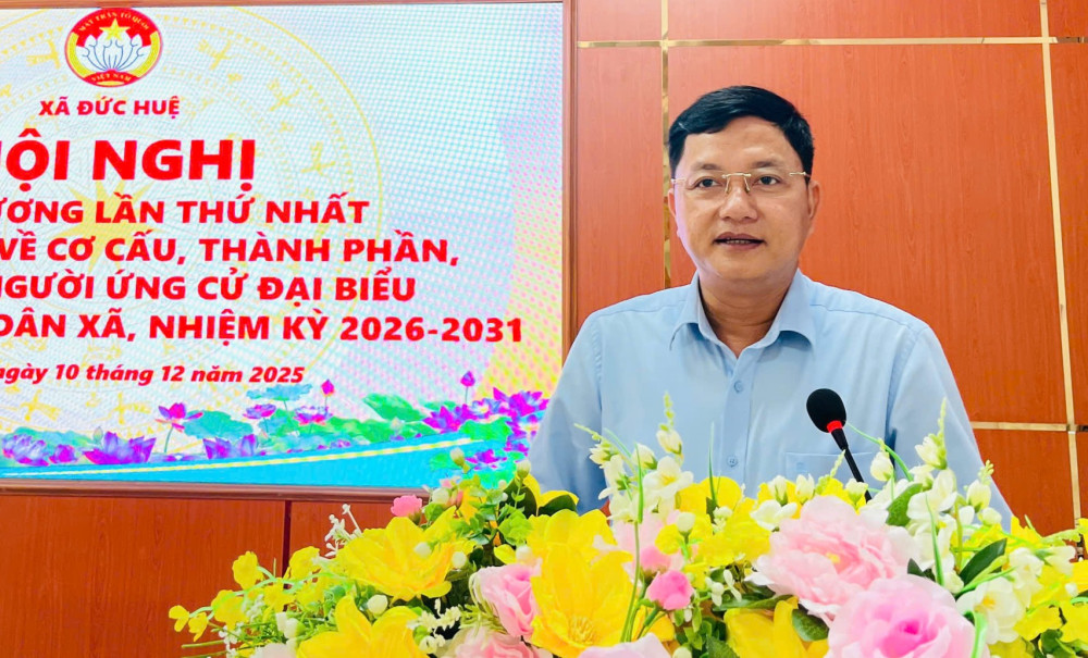 Tại hội nghị, đại diện Thường trực HĐND xã trình bày dự kiến cơ cấu, thành phần và phương án phân bổ số lượng người được giới thiệu ứng cử. Theo số liệu dân số tính đến cuối tháng 10/2025, xã Đức Huệ có 22.869 nhân khẩu. Căn cứ Luật Tổ chức chính quyền địa phương, tổng số đại biểu HĐND xã khóa II, nhiệm kỳ 2026-2031 được bầu là 20 đại biểu.