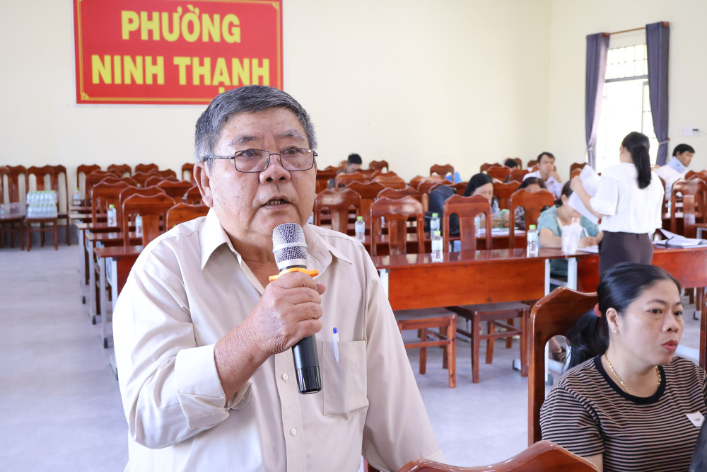 Sau phần báo cáo của đại biểu Quốc hội, cử tri phường Ninh Thạnh đã đóng góp 7 ý kiến, tập trung các nội dung: công tác bảo đảm an toàn thực phẩm, nhất là việc kiểm tra, giám sát thực phẩm lưu thông trên thị trường trong dịp Tết; tình trạng đốt pháo trái phép vẫn còn xảy ra, tiềm ẩn nguy cơ mất an ninh trật tự và an toàn xã hội.