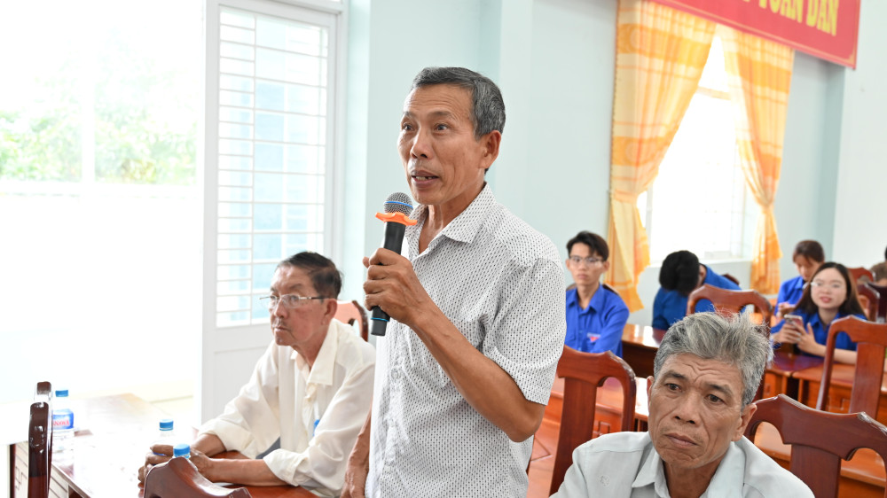 Cử tri xã Bình Đức phát biểu tại buổi tiếp xúc