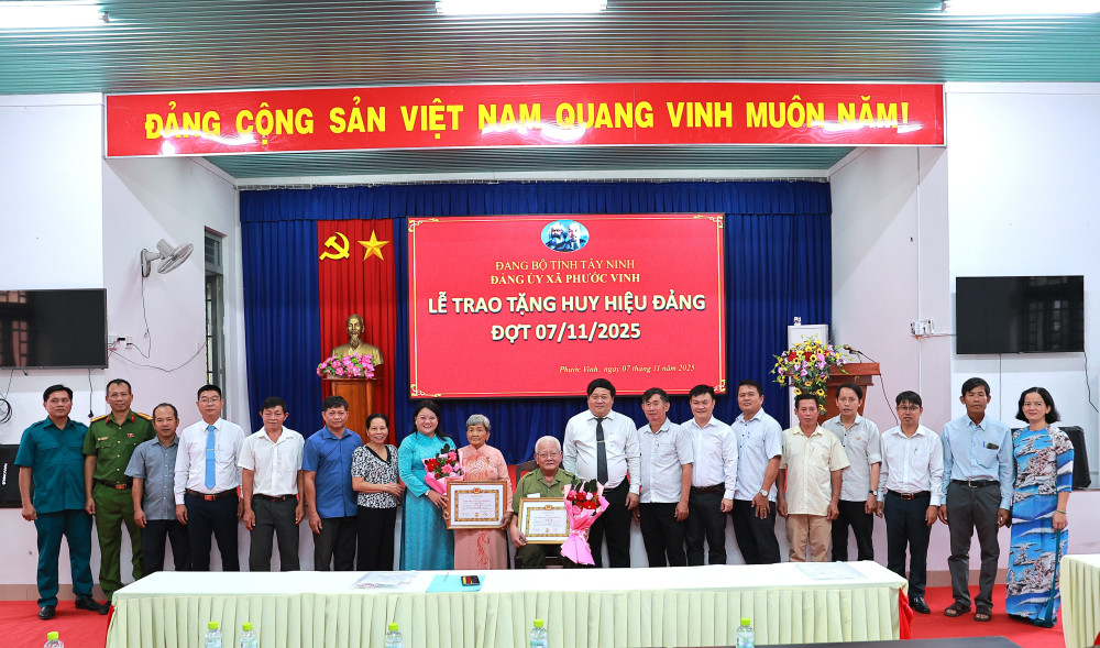 (BTNO) - Ngày 07/11, Đảng ủy xã Phước Vinh, tỉnh Tây Ninh, tổ chức Lễ trao tặng Huy hiệu 55, 40 năm tuổi Đảng đợt 07/11 cho 2 đảng viên đang sinh hoạt tại Chi bộ ấp Phước Lập và Phước Lợi.